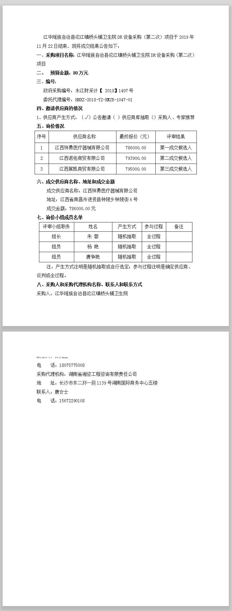江華瑤族自治縣沱江鎮(zhèn)橋頭鋪衛(wèi)生院 DR設(shè)備采購(第二次)成交結(jié)果公告