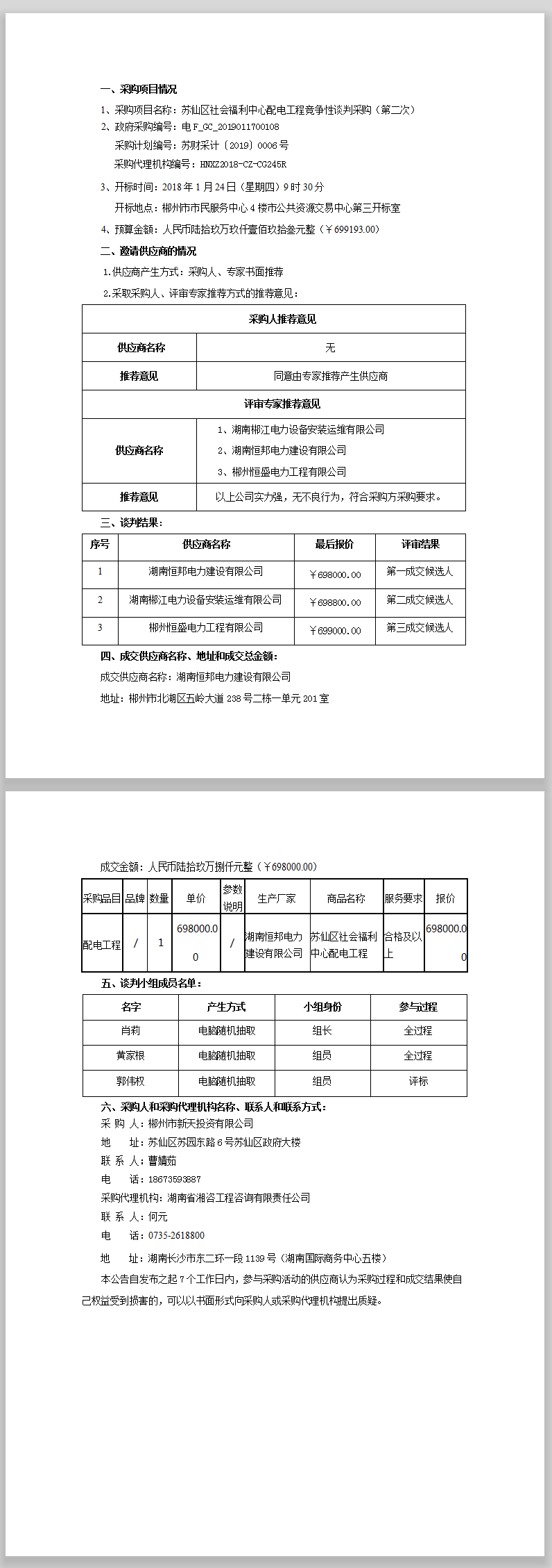 蘇仙區(qū)社會(huì)福利中心配電工程競(jìng)爭(zhēng)性談判采購(gòu)(第二次)成交公告