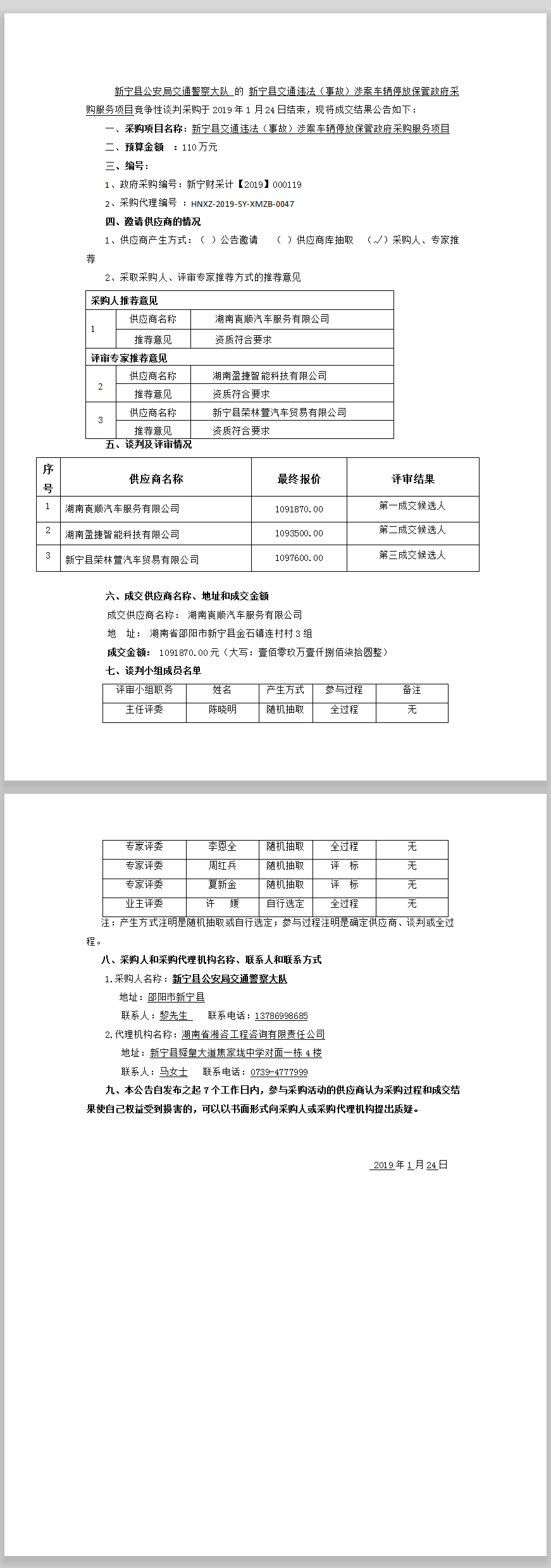 新寧縣交通違法(事故)涉案車輛停放 保管政府采購服務(wù)項(xiàng)目 競爭性談判成交結(jié)果公告