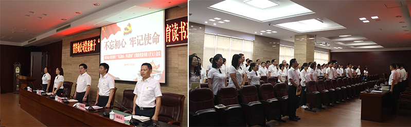 首先,黨委書記、董事長詹瓊雷帶領(lǐng)全體黨員重溫入黨誓詞,大家用滿懷激情的宣誓聲,表達(dá)了對黨的忠誠和扎實開展主題教育的決心。