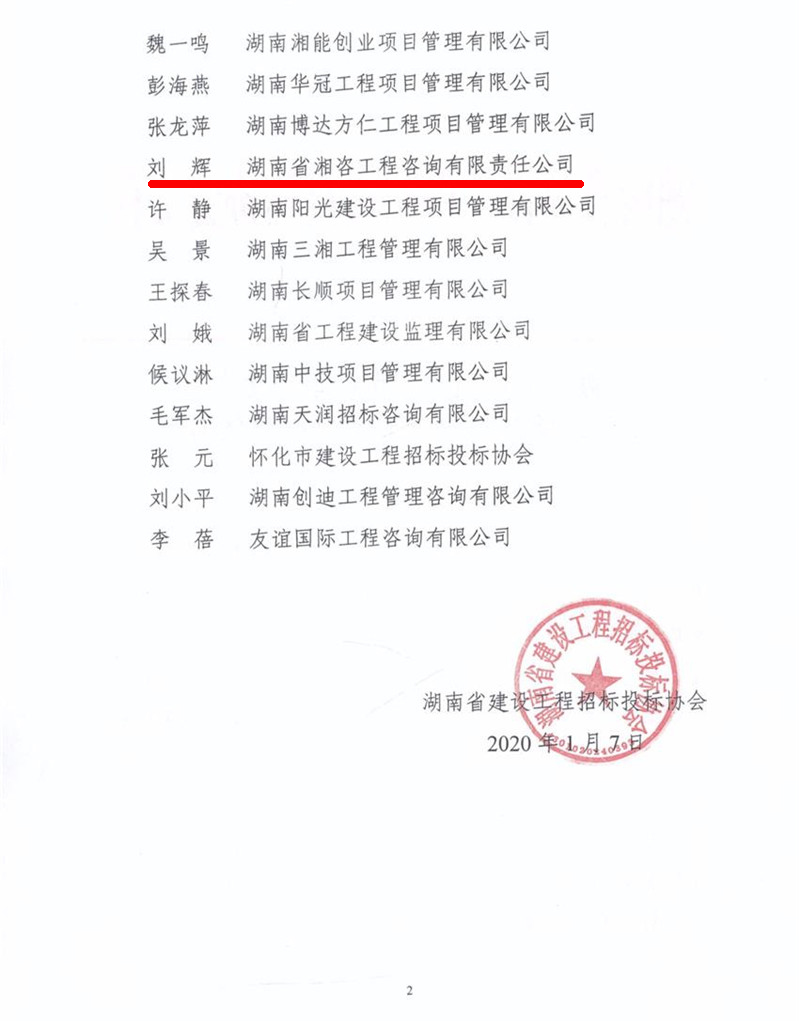 【喜訊】熱烈祝賀我司劉輝獲評湖南省建設(shè)工程招標(biāo)投標(biāo)協(xié)會2019年度優(yōu)秀聯(lián)絡(luò)員