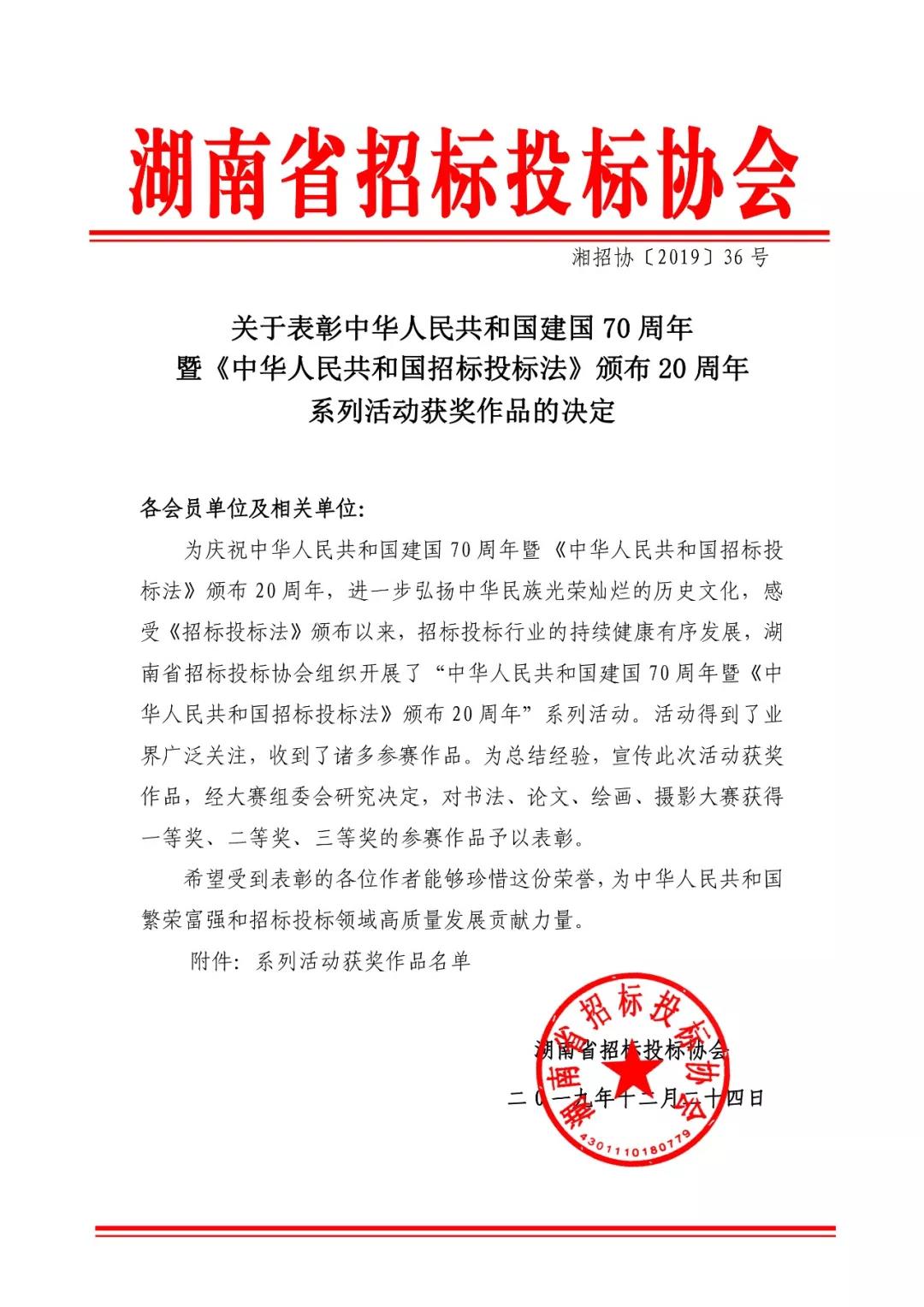 【喜訊】熱烈祝賀我司王佳勇榮獲湖南省招標(biāo)投標(biāo)協(xié)會書法大賽二等獎(jiǎng)