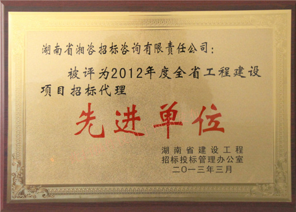 熱烈慶祝我司榮獲2012年度全省建設工程招標代理機構(gòu)先進單位