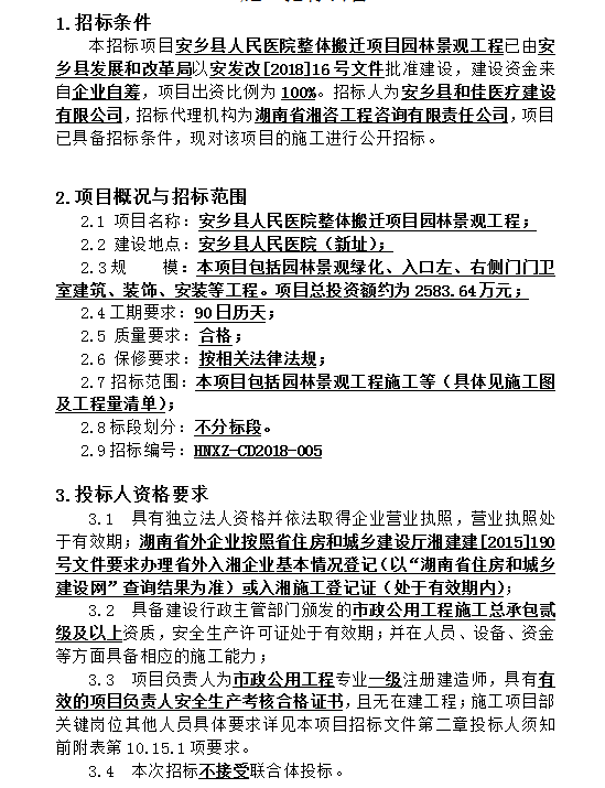 安鄉(xiāng)縣人民醫(yī)院整體搬遷項目園林景觀工程 施工招標公告