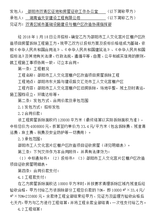 邵陽市工人文化宮片區(qū)棚戶區(qū)改造項目房屋拆除工程合同書