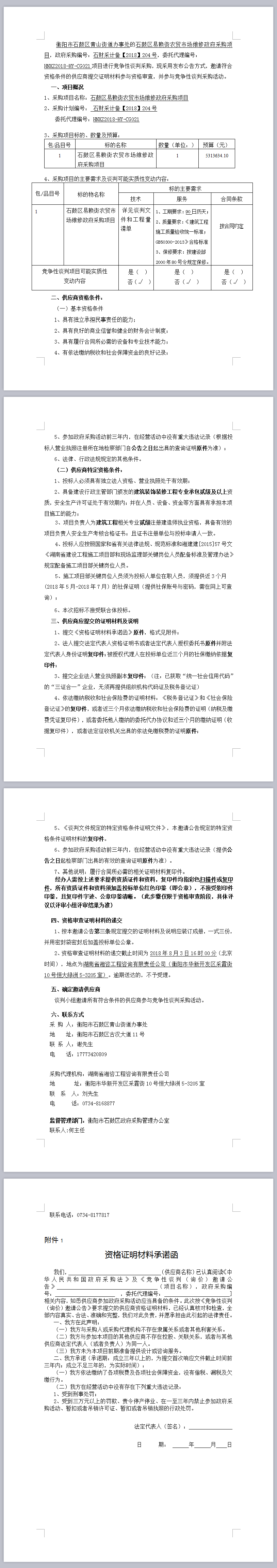 石鼓區(qū)易賴街農(nóng)貿(mào)市場(chǎng)維修政府采購(gòu)項(xiàng)目 競(jìng)爭(zhēng)性談判邀請(qǐng)公告