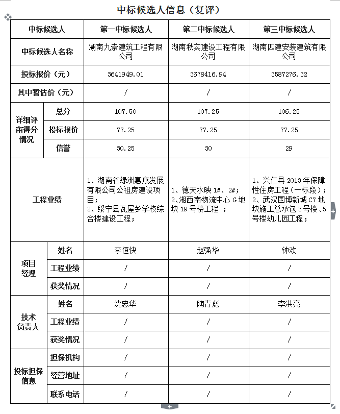 羅市鎮(zhèn)中心完小1#、2#教學(xué)樓建設(shè)項(xiàng)目 招標(biāo)投標(biāo)信息公示表(復(fù)評(píng))