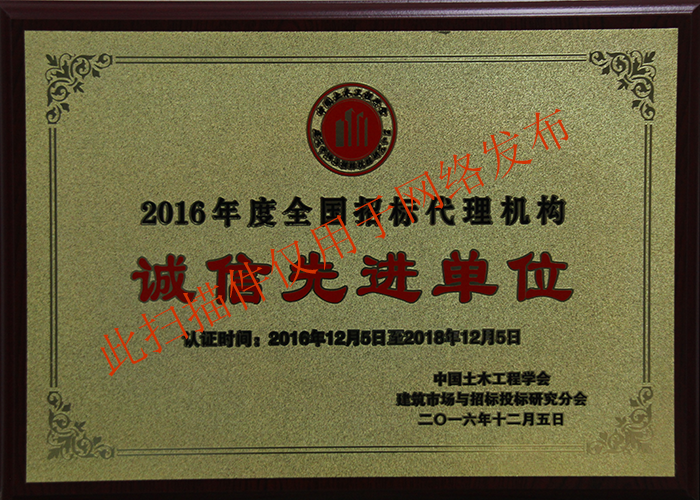2016年度全國招標代理機構(gòu)誠信先進單位