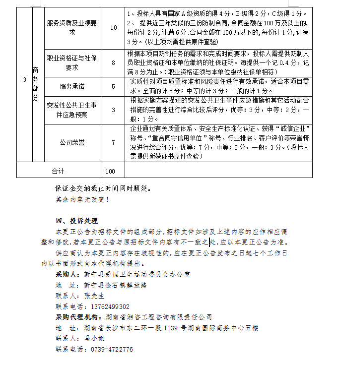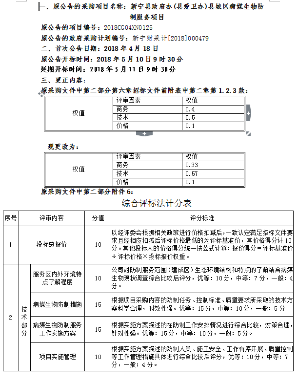 新寧縣政府辦(縣愛衛(wèi)辦)縣城區(qū)病媒生物防制服務項目 公開招標更正公告(二)