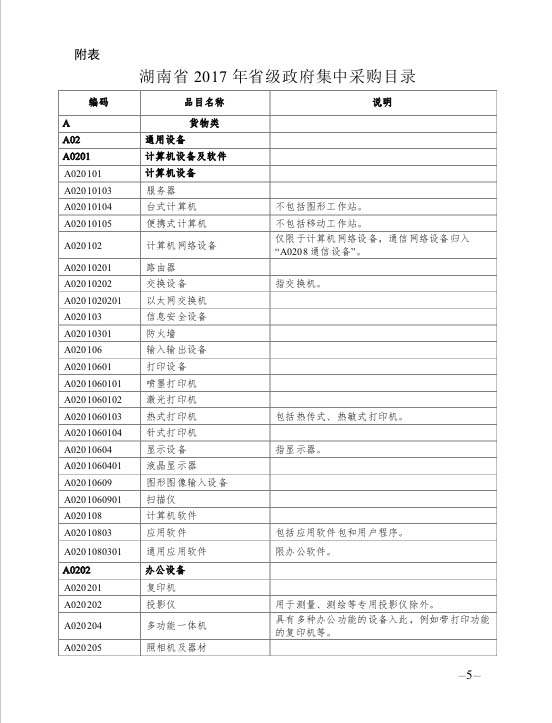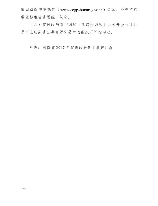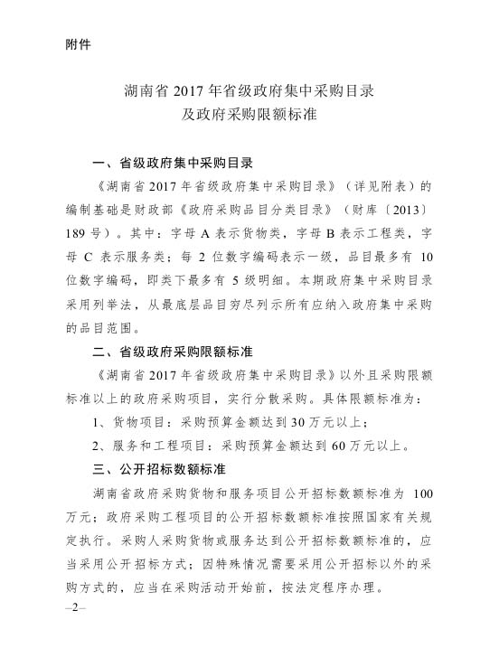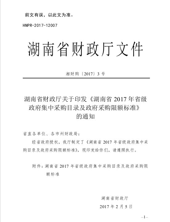 湖南省財政廳關于印發(fā)《湖南省2017年省級政府集中采購目錄以及政府采購限額標準》的通知