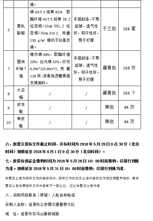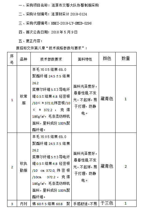 漣源市交警大隊(duì)協(xié)警制服采購招標(biāo)更正公告